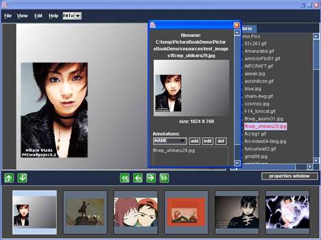 is pressed the next picture in the list becomes the current image which means that the main panel will display a full view of it and it's thumbnail will be highlighted in the thumbnail panel.